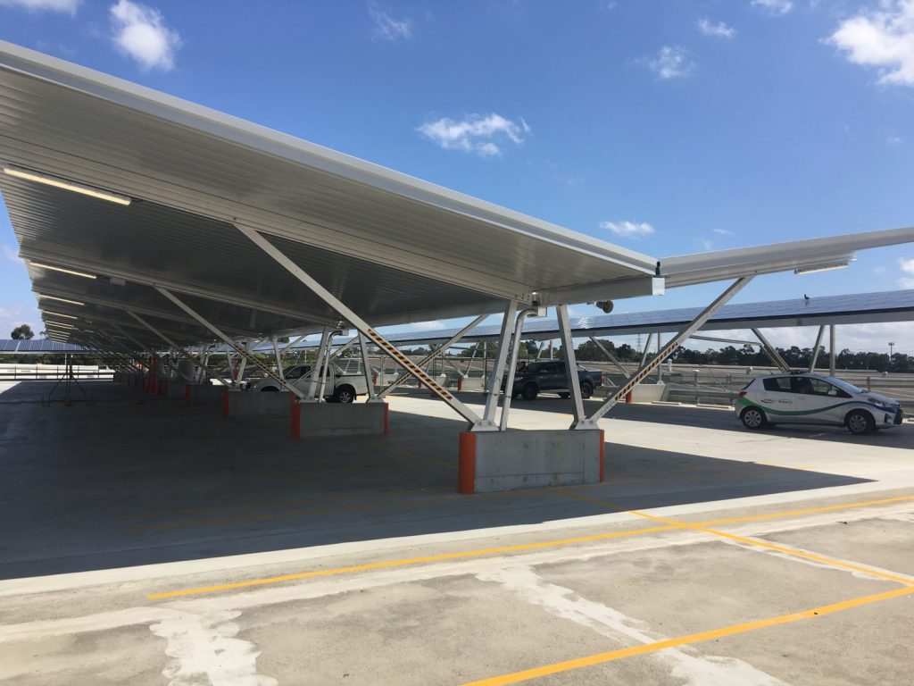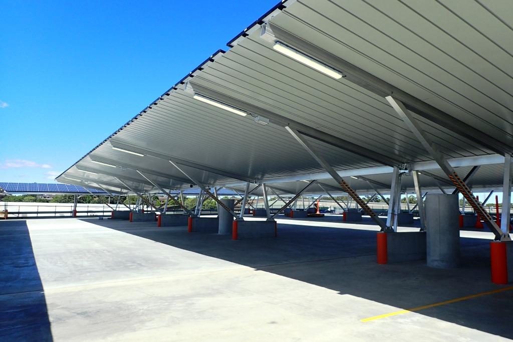 The solar shade car port is 647kW. At time of completion Sydney Markets currently lays claim to the largest purpose built solar carpark shading structure in Australia. The solar installation was provided by Autonomous Energy